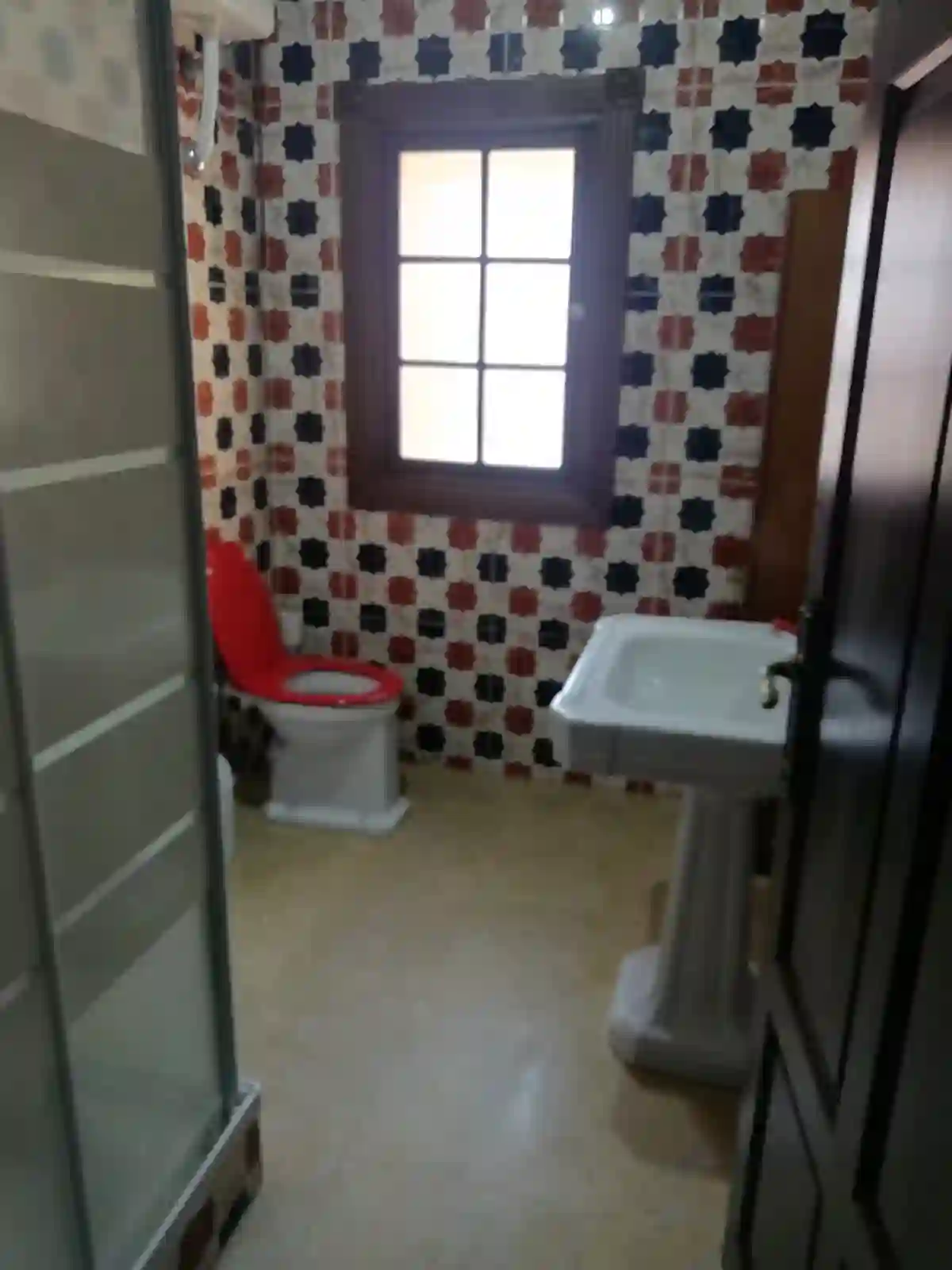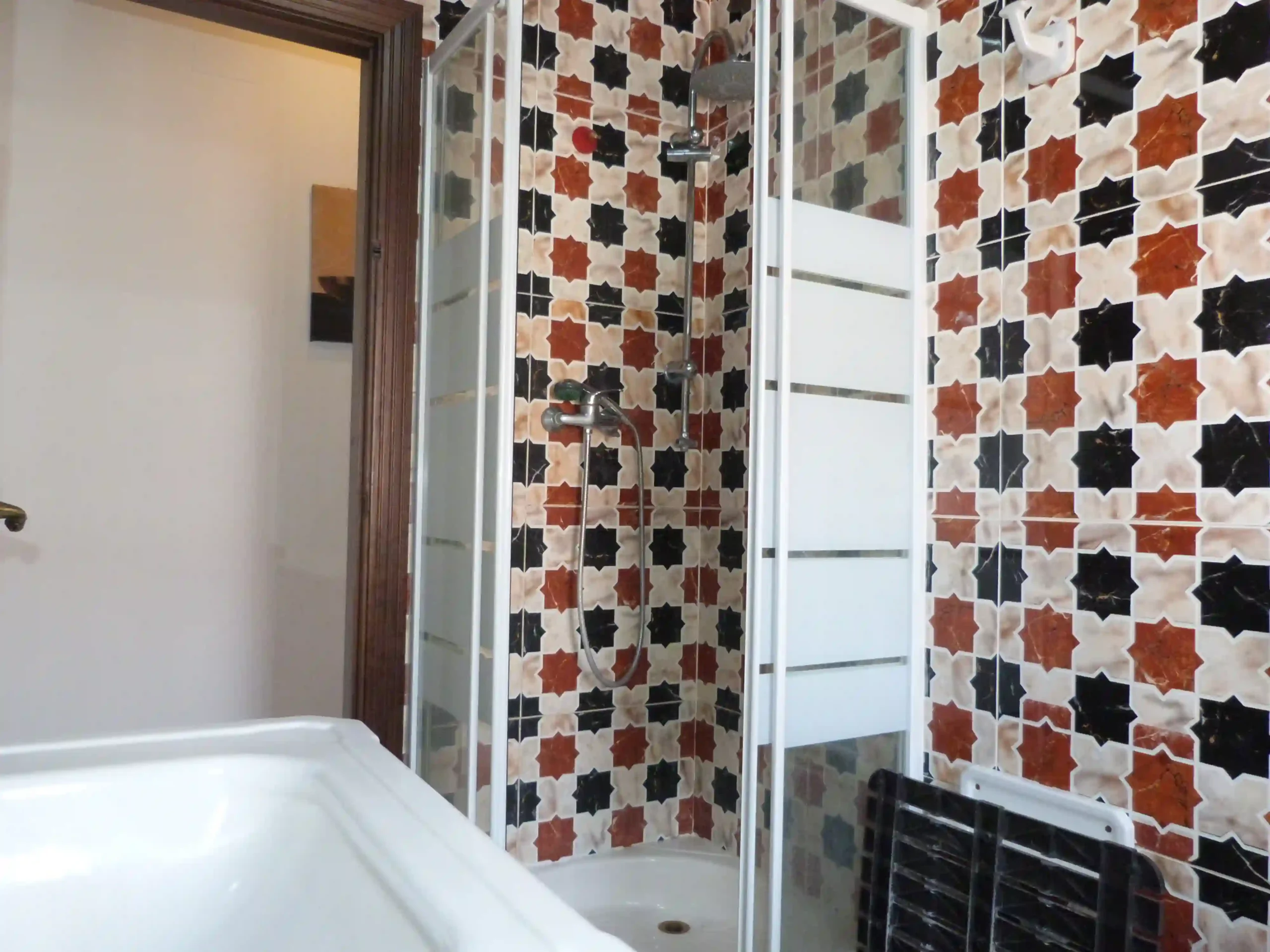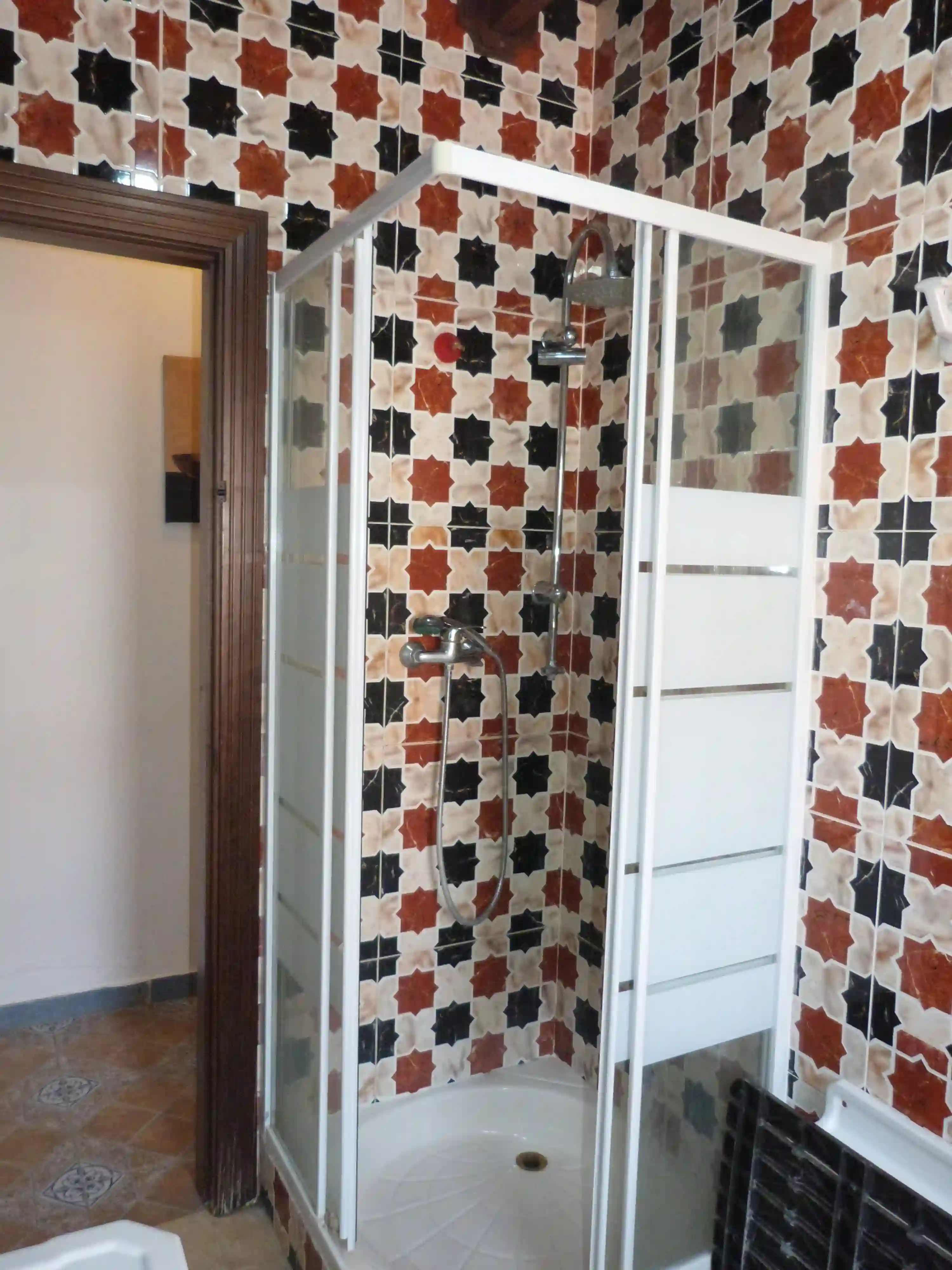 La zona de ducha cuenta con plato elevado y mampara corredera, lo que permite un uso cómodo y evita salpicaduras. La grifería es sencilla y resistente, adecuada para un uso frecuente. El baño dispone de ventana, aportando luz natural y facilitando una correcta ventilación.