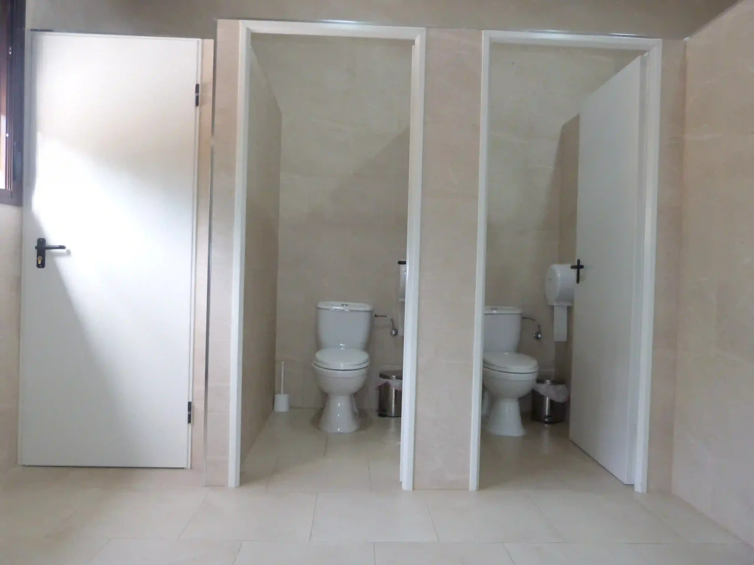 Los baños compartidos masculinos son amplios, funcionales y están pensados para un uso cómodo y continuo. El espacio dispone de varias cabinas individuales cerradas para duchas y aseos, que garantizan privacidad y orden en todo momento.