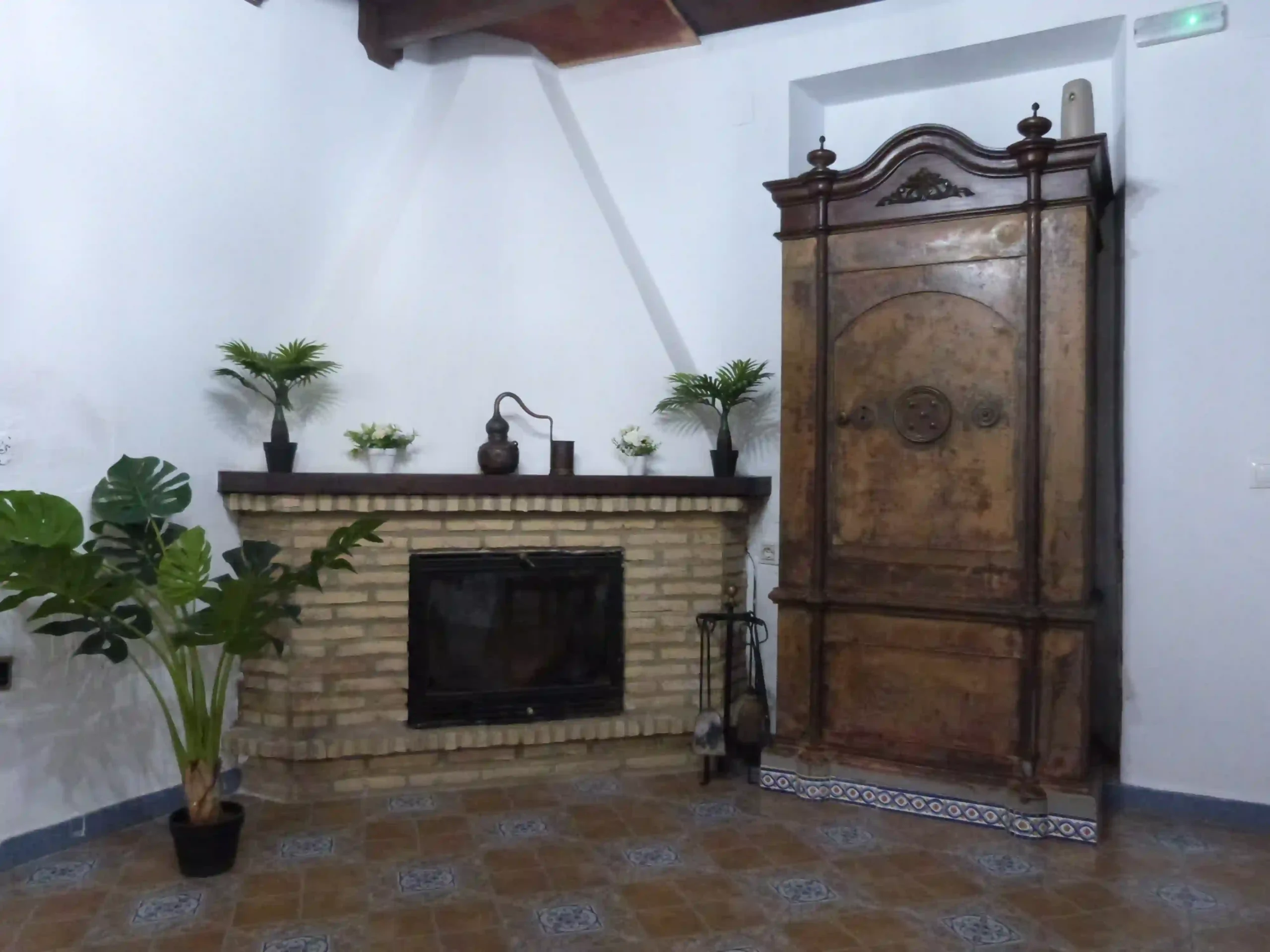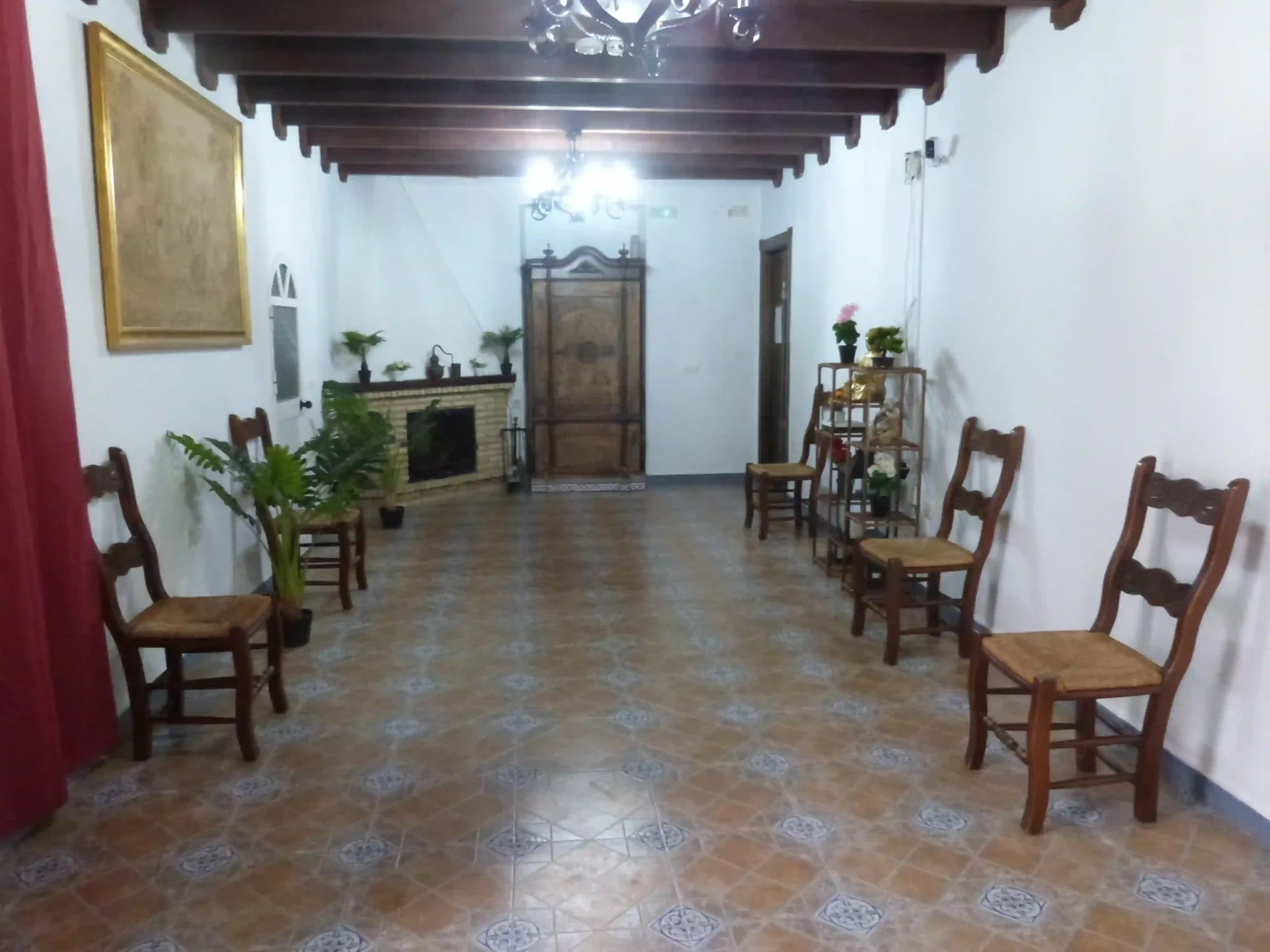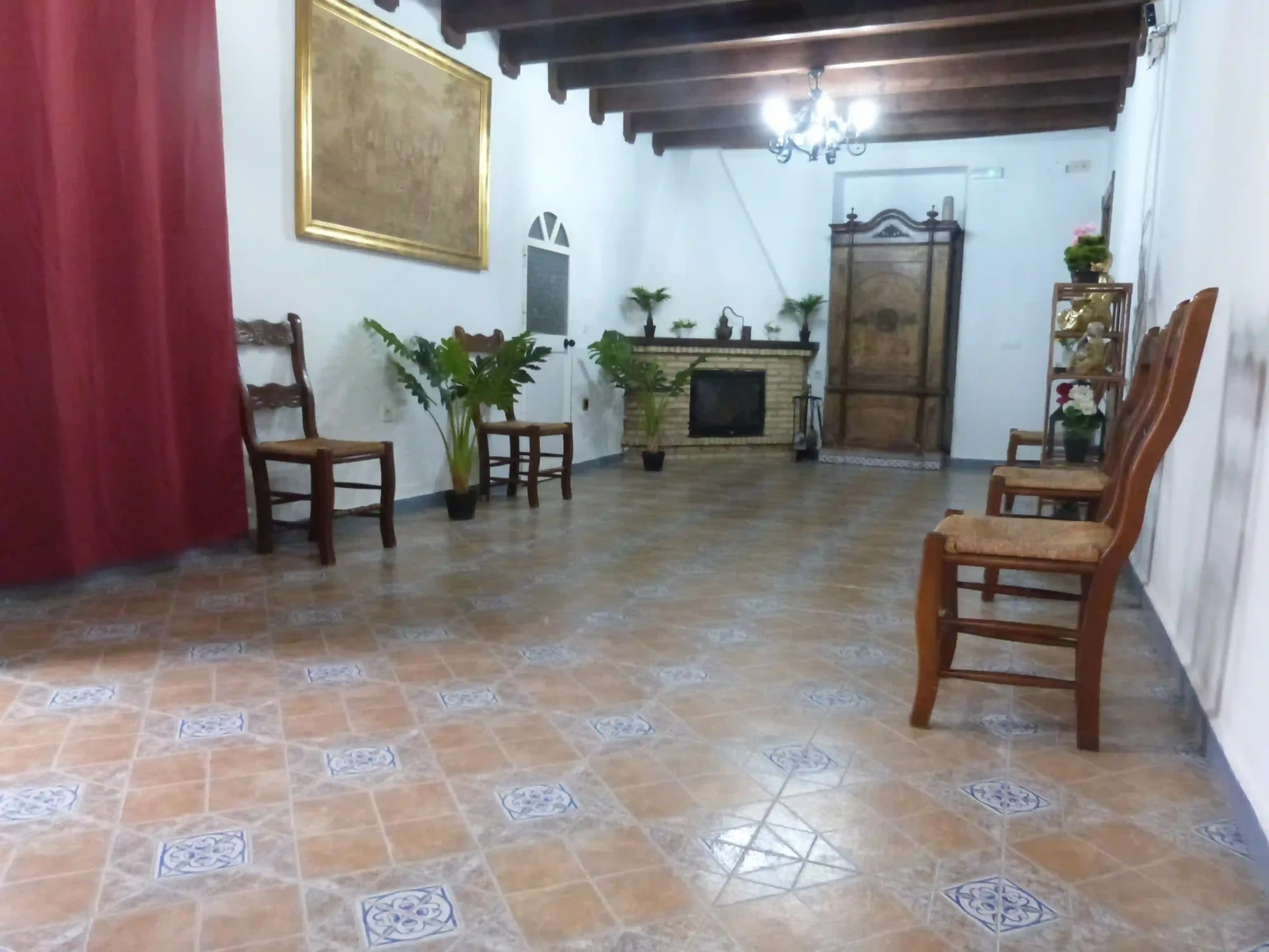 La recepción es un espacio amplio y con carácter, que funciona como primer punto de contacto y zona de acogida. Mantiene una estética tradicional, con techos de vigas de madera vistas, suelo cerámico y elementos decorativos que aportan identidad sin resultar recargados.